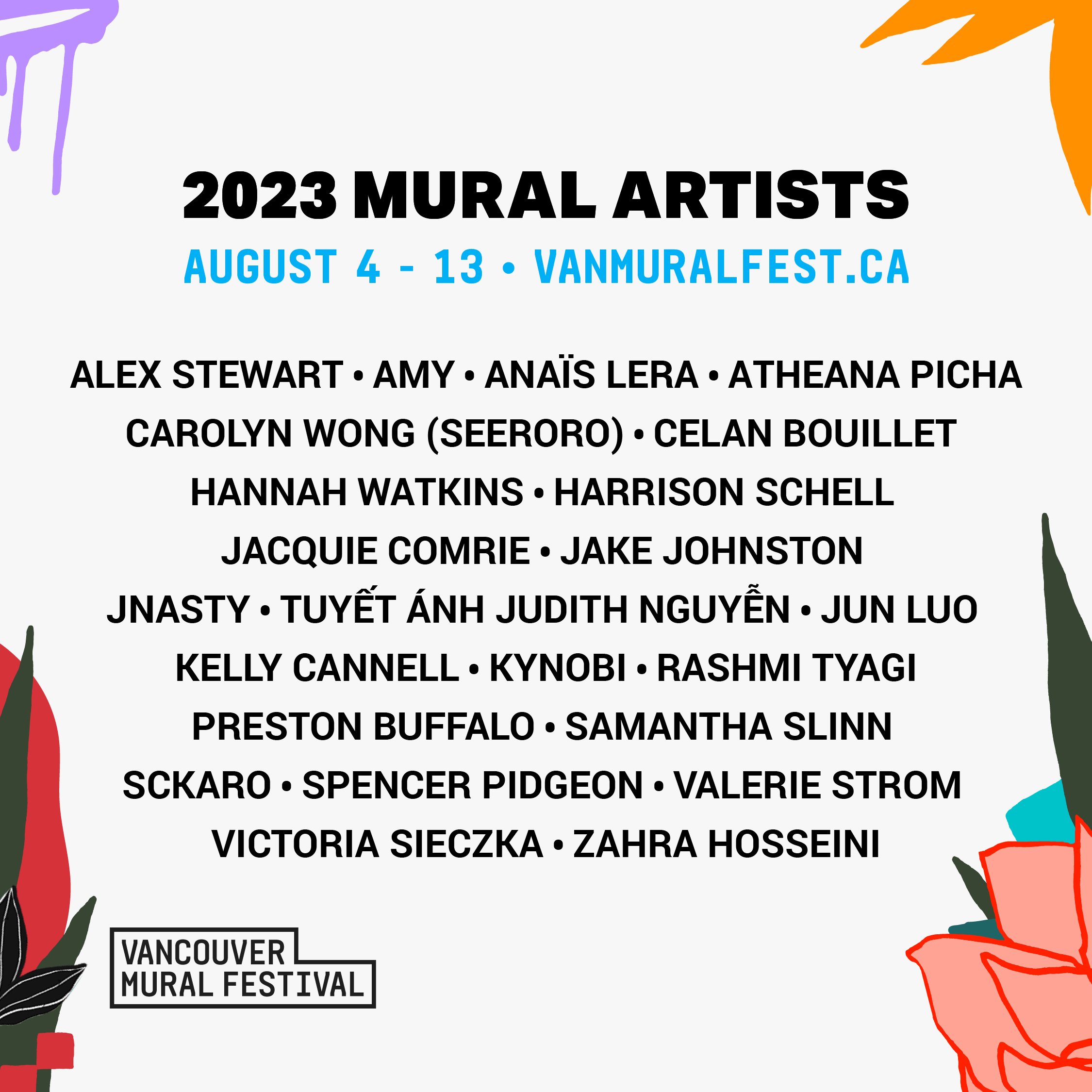 Follow @vanmuralfest on social media (Instagram, Facebook, Twitter) for updates about Vancouver Mural Festival 2023.