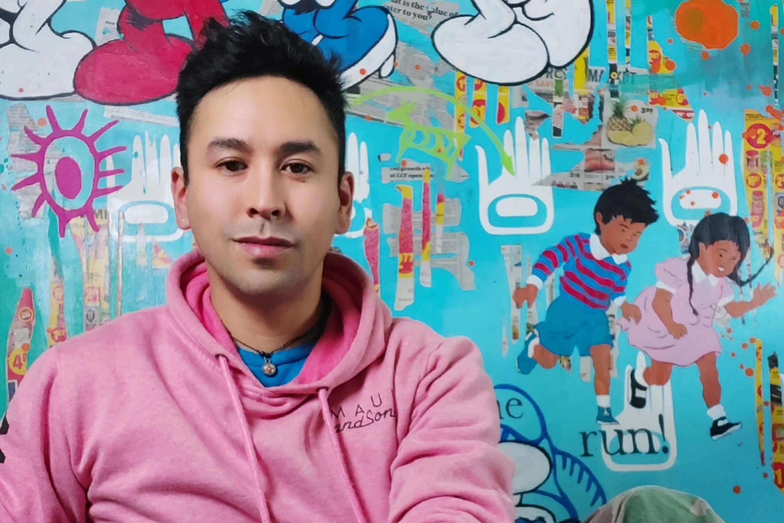 Levi Nelson is an artist from the Lil’wat Nation located in Mount Currie, BC, Canada. He recently completed his undergraduate degree from Emily Carr University of Art + Design in Vancouver, with a focus in the Visual Arts. Nelson’s work can best be described as contemporary First Nations art, where he fuses Aboriginal elements and ideas concerning Indigeneity, with pop culture imagery through the traditional Western practice of oil painting, in addition to mixed media; integrating silkscreen, paint, and collage on canvas. Nelson is the recipient of the 2021 John C. Kerr Chancellor Emeritus Award for Excellence in Visual Arts, the 2018 IDEA Art Award, and received an Honorable Mention for his painting Nations in an Urban Landscape, 2019 for the 2021 ECU Graduation Award for Anti-Racism & Social Justice. His work is a part of the Permanent Collections of the Audain Art Museum Whistler and The VGH & UBC Hospital Foundation Art Collection, as well as numerous important Private Collections in the Lower Mainland and across Canada.